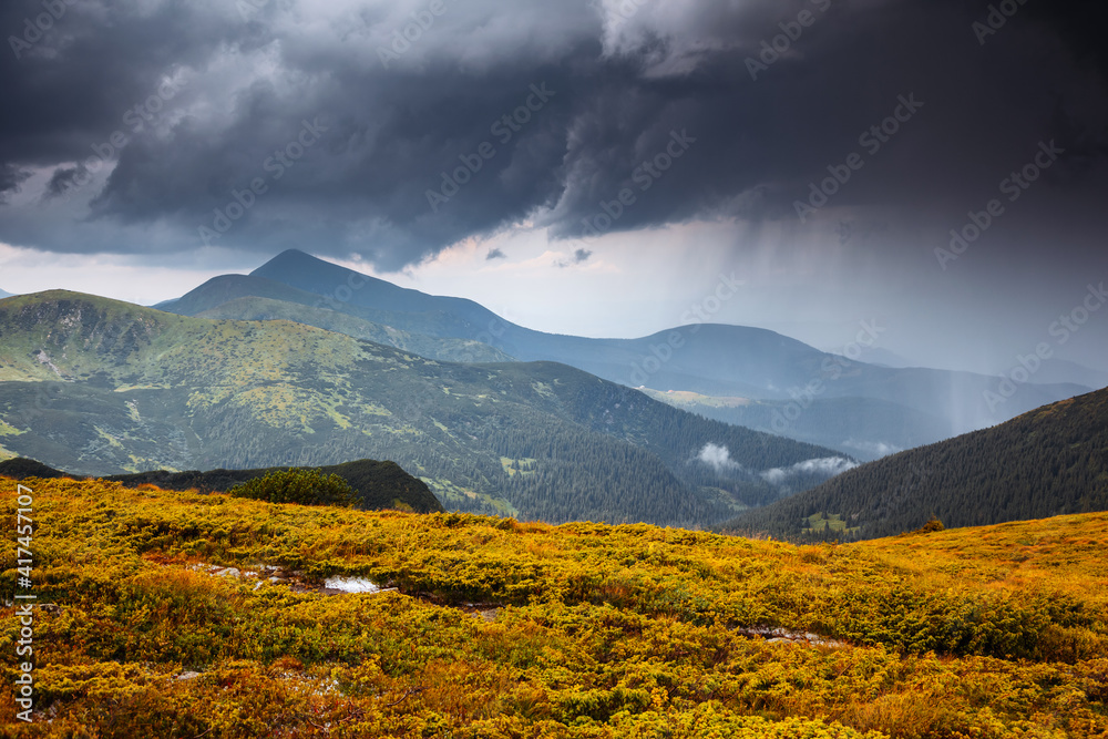 Unusual heaven before the storm. Location place carpathian mountains national park, Ukraine, Europe.