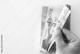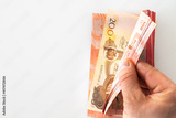 Bolivian money. A lot of banknotes, High value, Banking business concept, White background, Place for text
