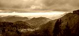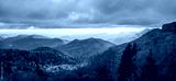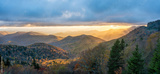 Colorful setting autumn sun on the southern stretch of Blue Ridge Parkway - North Carolina Cowee Mountain Overlook