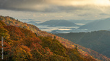 Dramatic autumn weather - with clouds, fog and sun - on the southern Blue Ridge Parkway - Mountains - North Carolina