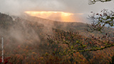 Autumn Fog at sunrise at the Waterrock Knob visitor center on the Blue Ridge Parkway - North Carolina