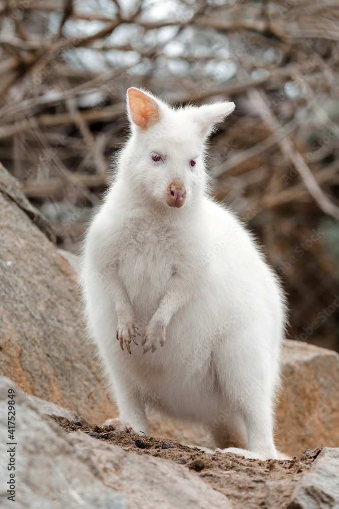 Red-necked Wallaby with very rare white albino color, female, kangaroo (Macropus rufogriseus)