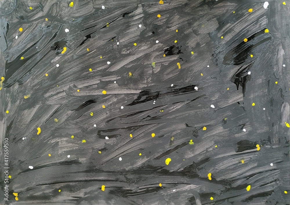 Color spots yellow, white, orange, on a black background gouache ( starry sky, texture)