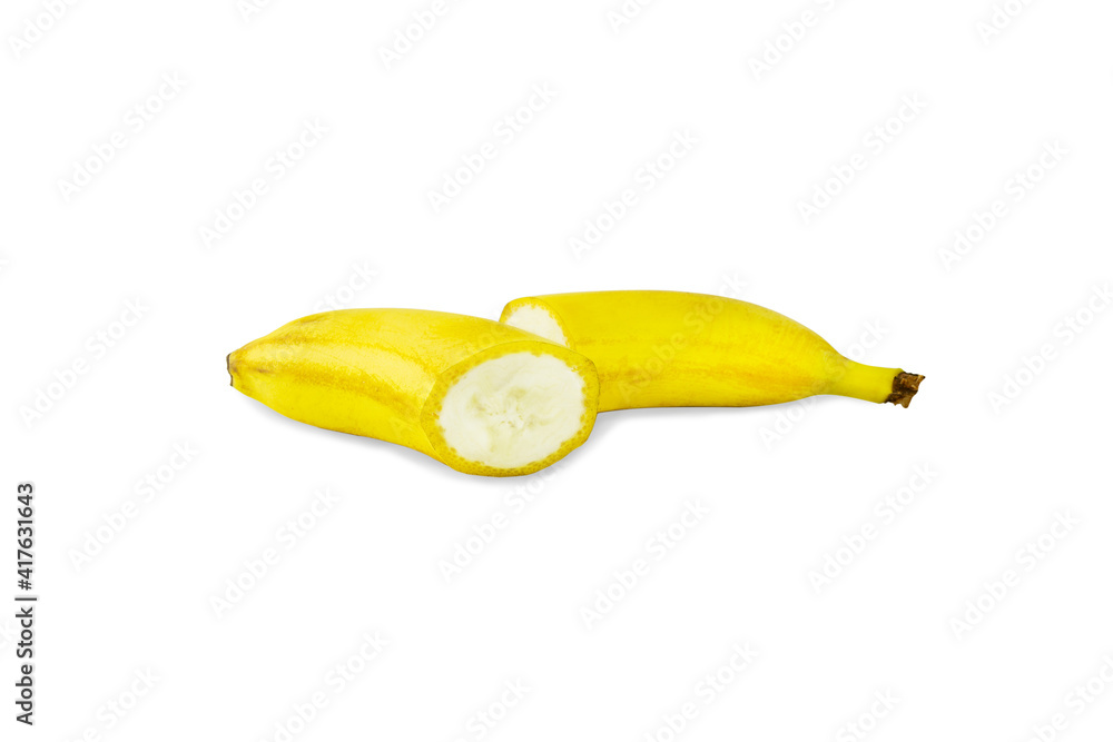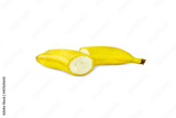 Ripe yellow banana cuted across in half. Isolated on white background.