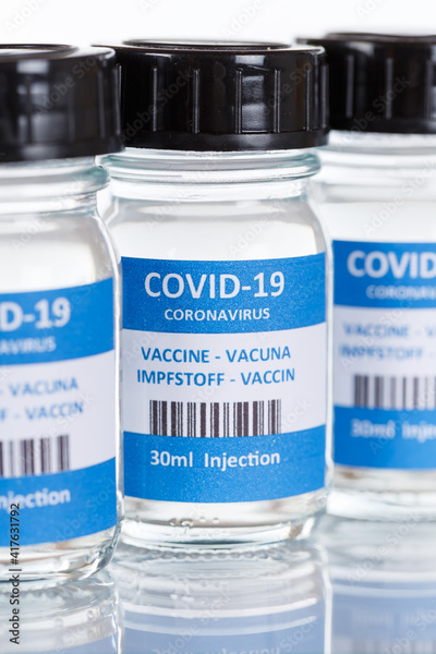 Coronavirus Vaccine bottle Corona Virus COVID-19 Covid vaccines portrait format in a row