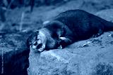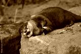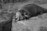 Asian small-clawed otter in the nature habitat. Otter in zoo during the lunch time. Wild scene with captive animal. Amazing and playful animals. Aonyx cinereus.