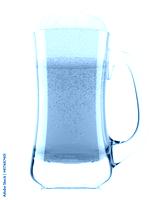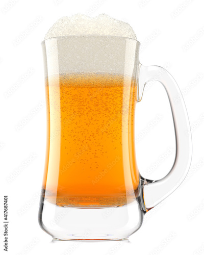 Frosty glass of fresh light beer with bubble froth isolated on white background.