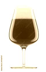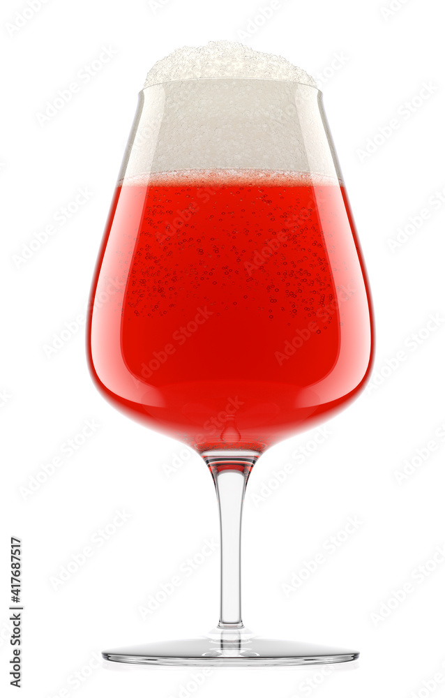 Frosty glass of fresh draft beer with bubble froth isolated on white background.