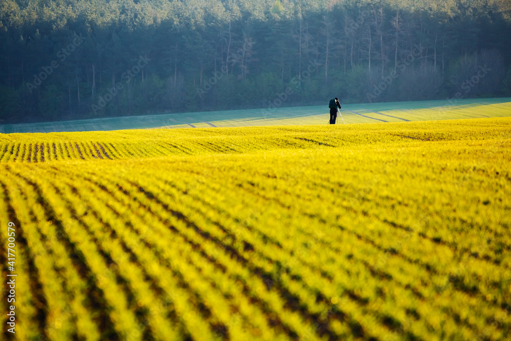 Picturesque agricultural area on the springtime on a sunny day. Location place of South Moravian region (Moravia).