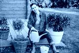 woman watering plants. Woman holds a watering can in her hand and smiles. Gardening fun. Girl in the garden. Garden maintenance and plant beautiful trees. House in the country with a large garden
