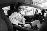 safety and people concept - happy smiling young woman or female car driver fastening seat belt