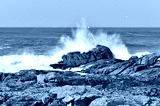 View from a cliff with waves splashing at famous Costa da Morte in Galicia Region. Coruña, Spain.