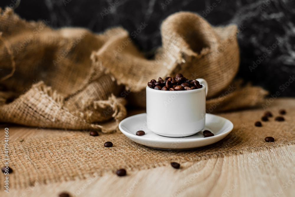 Cup with coffee beans