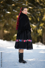 Young beautiful slovak woman in traditional dress. Slovak folklore