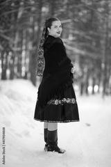 Young beautiful slovak woman in traditional dress. Slovak folklore