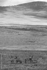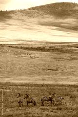 African zebras at beautiful landscape in the Ngorongoro National Park. Tanzania. Wild nature of Africa..
