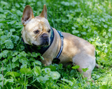 Young Frenchie Male Looking for Rodents in Dense Weeds in Northern California.