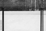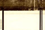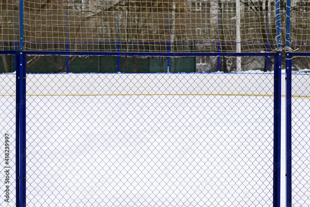 Fragment of a mesh metal fence of an outdoor hockey court