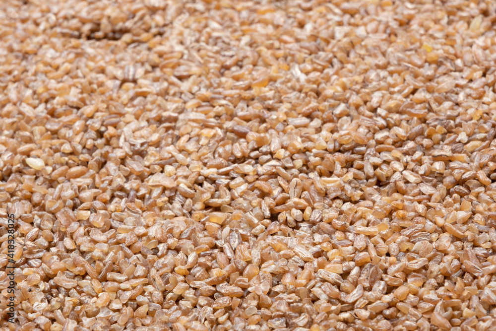 Bulgur source of natural protein, fiber and fat. Natural background. Healthy food.