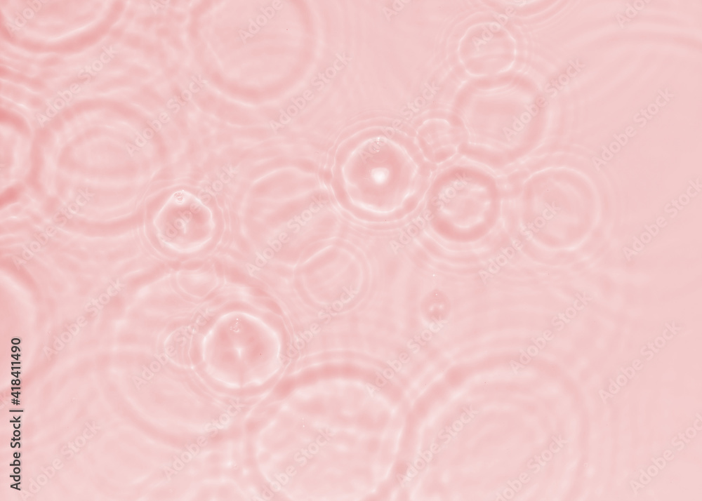 Pink shadow texture of the sun light refraction in concentric circular waves from drops falling on water. Cool nature background of clear transparent water. Unobtrusive rainy weather pattern.