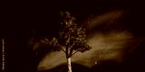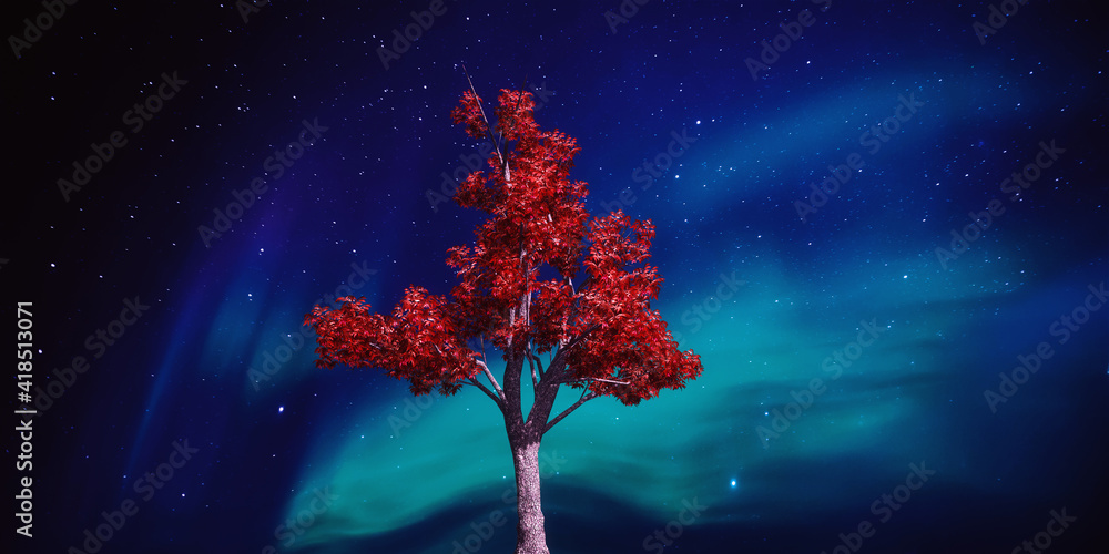 Beautiful colorful landscape with a lonely tree in a field./Night sky with stars and silhouette mangrove tree .