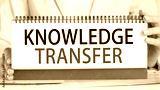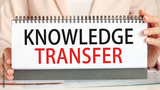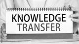 Businessman showing text KNOWLEDGE TRANSFER on a cardboard