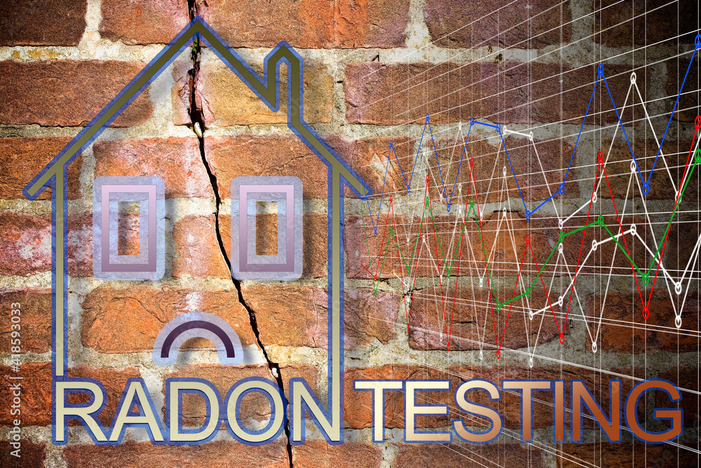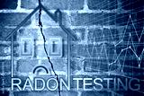 The danger of radon gas in our homes - Radon Testing concept image with an outline of a small house with radon text against an old cracked brick wall