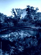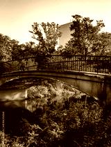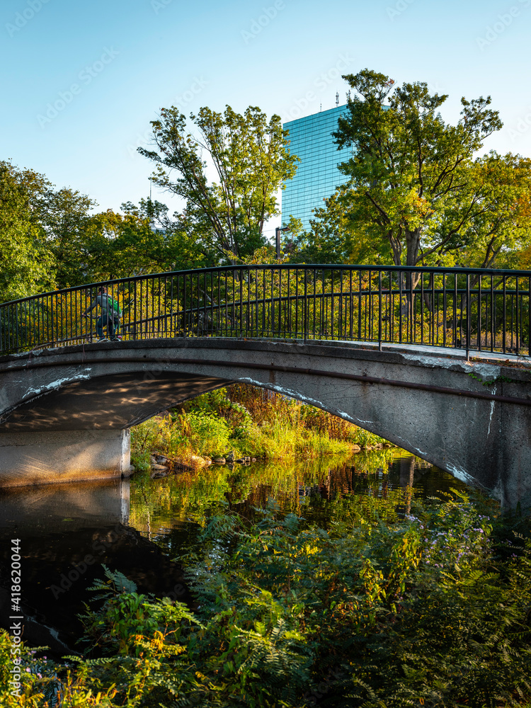 Tranquil Autumn Landscape with Bridge over the Storrow Lagoon of Charles River Park in Boston