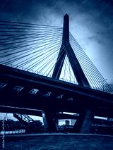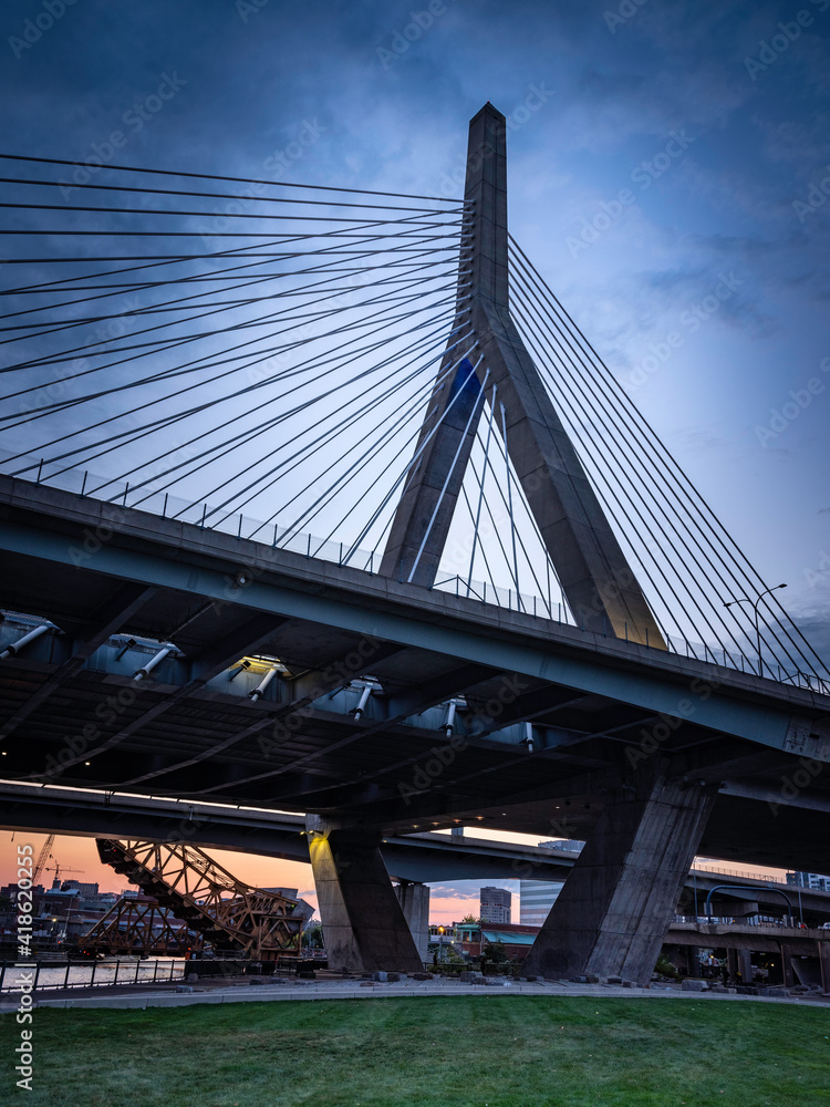 Night Landscape of Tall Cable-Stayed Bridge in Boston