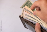Banknote money in wallet background and saving money and business growth concept, finance and investment concept