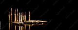 Bullet isolated on black background with reflexion. Rifle bullets close-up on black back. Cartridges for rifle and carbine on a black.