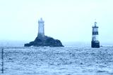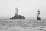 Lighthouse and beacon on Biscay Bay on a cloudy day