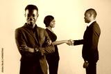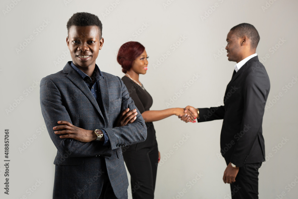 group of young african people on gray background