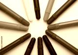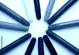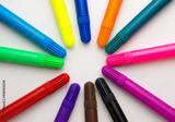 Abstract background with markers of different colors on white paper. Background with multi-colored markers.