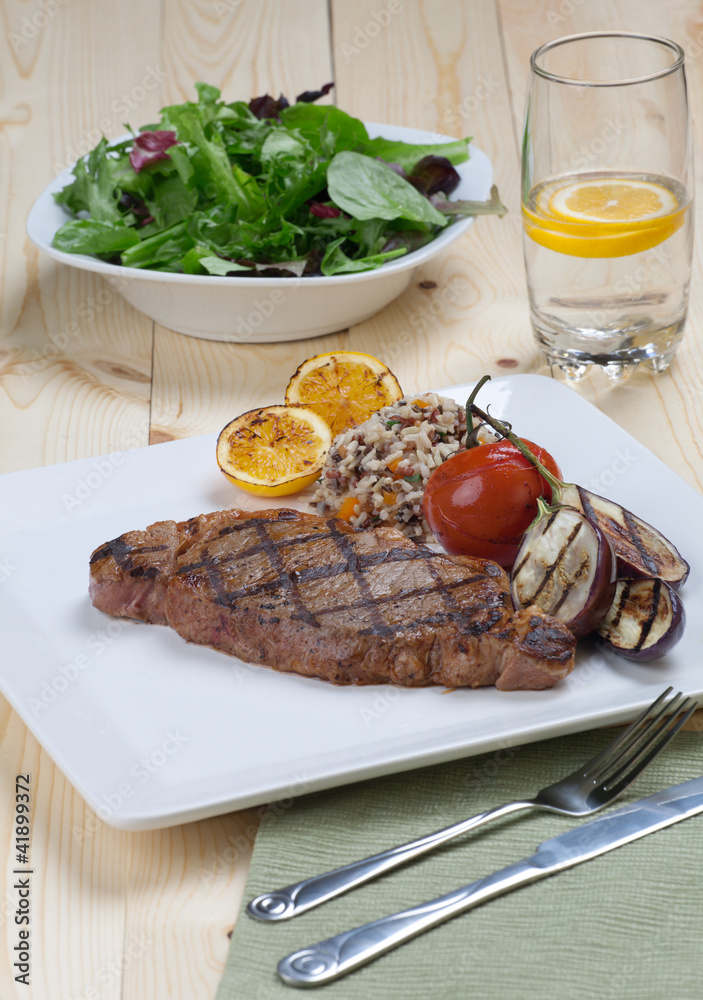 Piece of Medium Rare Steak with Spicy Herb Sauce