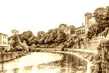 Landscapes along the river flowing by Kilkenny Castle in Ireland