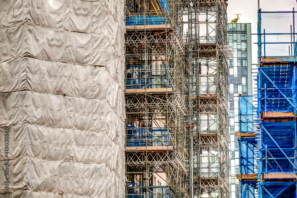 Buildings and construction along the shores of the Liverpool waterfront in the UK