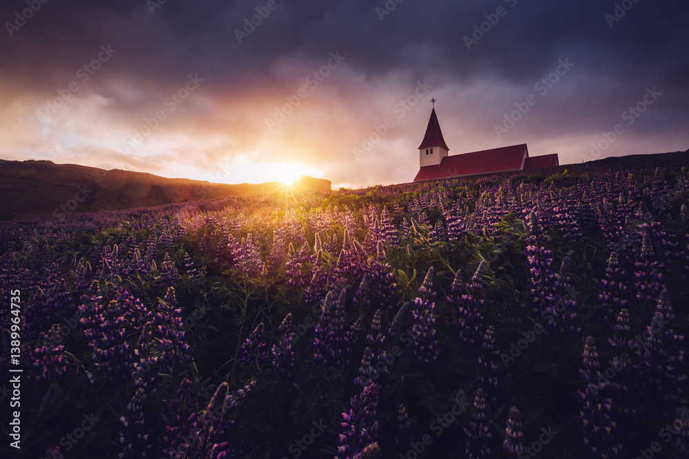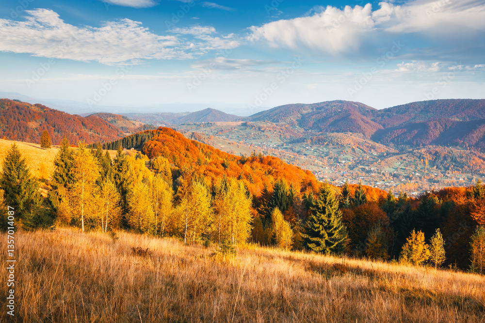 Captivating ornamental garden with blooming lush trees in idyllic sunny day.