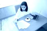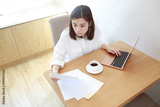 wife is working on the table at day time