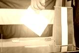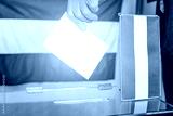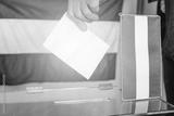Parliament election concept - hand putting ballot in election box during pandemic. Elections in the Netherlands.