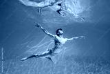 Male Caucasian man swimmer diver dancer swims under water in the sea. Summer tourism, travel journey trip voyage, holiday and vacation. Concertation, art, beauty and freedom concept