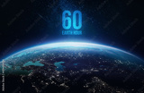 Earth Hour event. Planet Earth in dark outer space. Orbit and surface. Elements of this image furnished by NASA