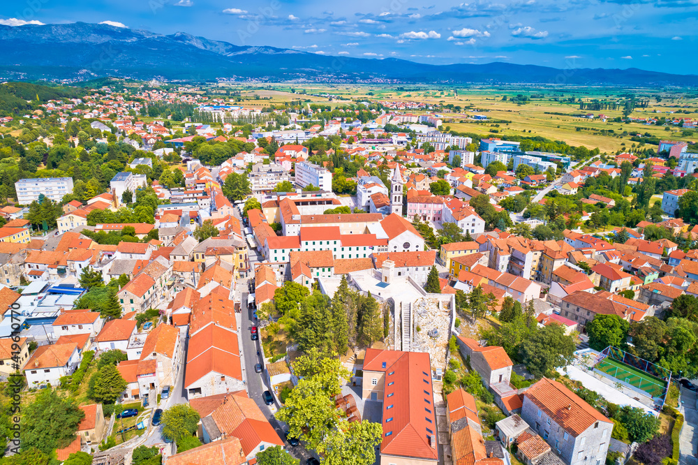 Town of Sinj in Dalmatia hinterland aerial view