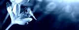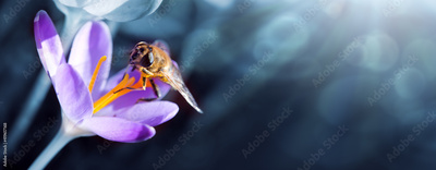Spring background with close-up of a group of blooming purple crocus flowers .