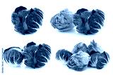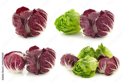 red "radicchio" lettuce and green "little gem"lettuce on a white background