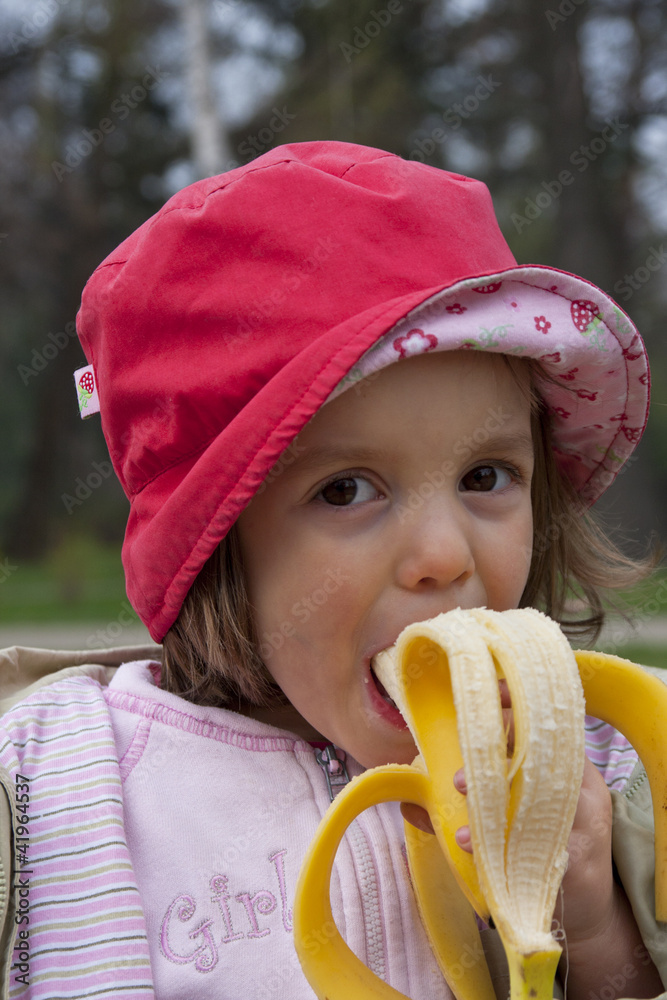 Dziewczynka je banana