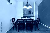 Dining room with orange wall