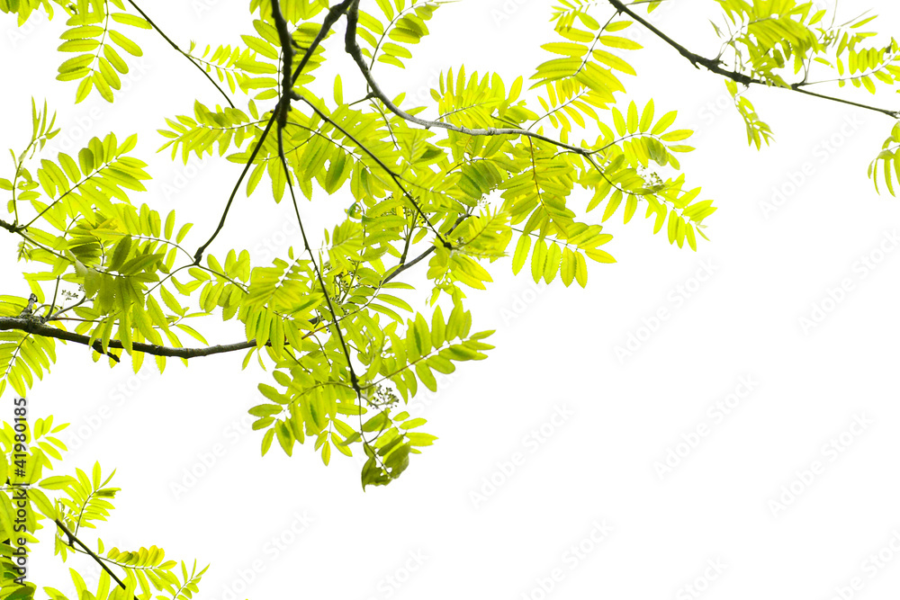 Fresh, Spring leaves of mountain ash tree
