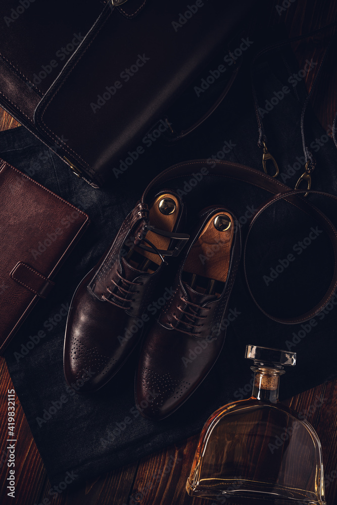 Men s leather shoe, belt and diary