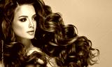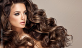 Beautiful model girl with long wavy and shiny hair . Brunette woman with curly hairstyle